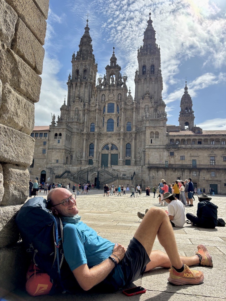 Facetiming Tracey from the summit, Simon says, “we both got a bit emotional. It felt incredibly meaningful to take part in such a spiritual tradition. I think Tracey felt proud to be part of the Camino.”