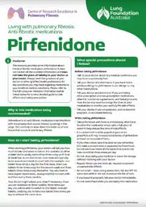 This fact sheet has been designed to help people living with Pulmonary Fibrosis (PF) to understand more about the antifibrotic medication, Pirfenidone. Pirfenidone is used to treat PF by slowing down the build-up of scar tissue in the lungs.