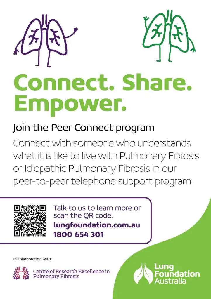Lung Foundation Australia connects patients and carers living with the same lung condition including pulmonary arterial hypertension (PAH), chronic obstructive pulmonary disease (COPD), lymphangioleiomyomatosis (LAM), bronchiectasis, lung cancer, idiopathic pulmonary fibrosis (IPF), pulmonary fibrosis (PF) and interstitial lung disease (ILD) through support programs such as the Peer Connect program and our peer-led online support groups.