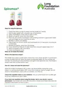 The Spiromax® Inhaler Device Technique Factsheet from Lung Foundation Australia provides essential guidance to help people with COPD or asthma use their Spiromax® inhaler correctly. The Spiromax is a breath-activated dry powder inhaler that delivers medication directly to the lungs, but correct technique is essential to ensure the full dose is received. Many people are unaware that incorrect inhaler use can lead to poor symptom control, increased breathlessness, and a higher risk of exacerbations. This factsheet provides step-by-step instructions to help users improve their inhaler technique and get the most from their treatment.