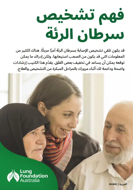The Understanding a Lung Cancer Diagnosis booklet is available in Arabic. This version provides essential information and support for Arabic-speaking individuals and their families, making it easier for them to access trusted resources on lung cancer, treatment options, and care. By offering the booklet in Arabic, the aim is to help more people in the community make informed decisions about their health.