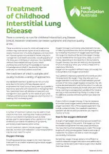 The treatment of Childhood Interstitial Lung Disease (chILD) focuses on alleviating symptoms and improving the quality of life, though there is currently no cure. This fact sheet is designed for parents, caregivers, and healthcare professionals to understand the complexities of treating chILD. It outlines various treatment options tailored to the specific needs of each child, emphasizing the importance of early diagnosis and individualized care plans developed by paediatric respiratory specialists.